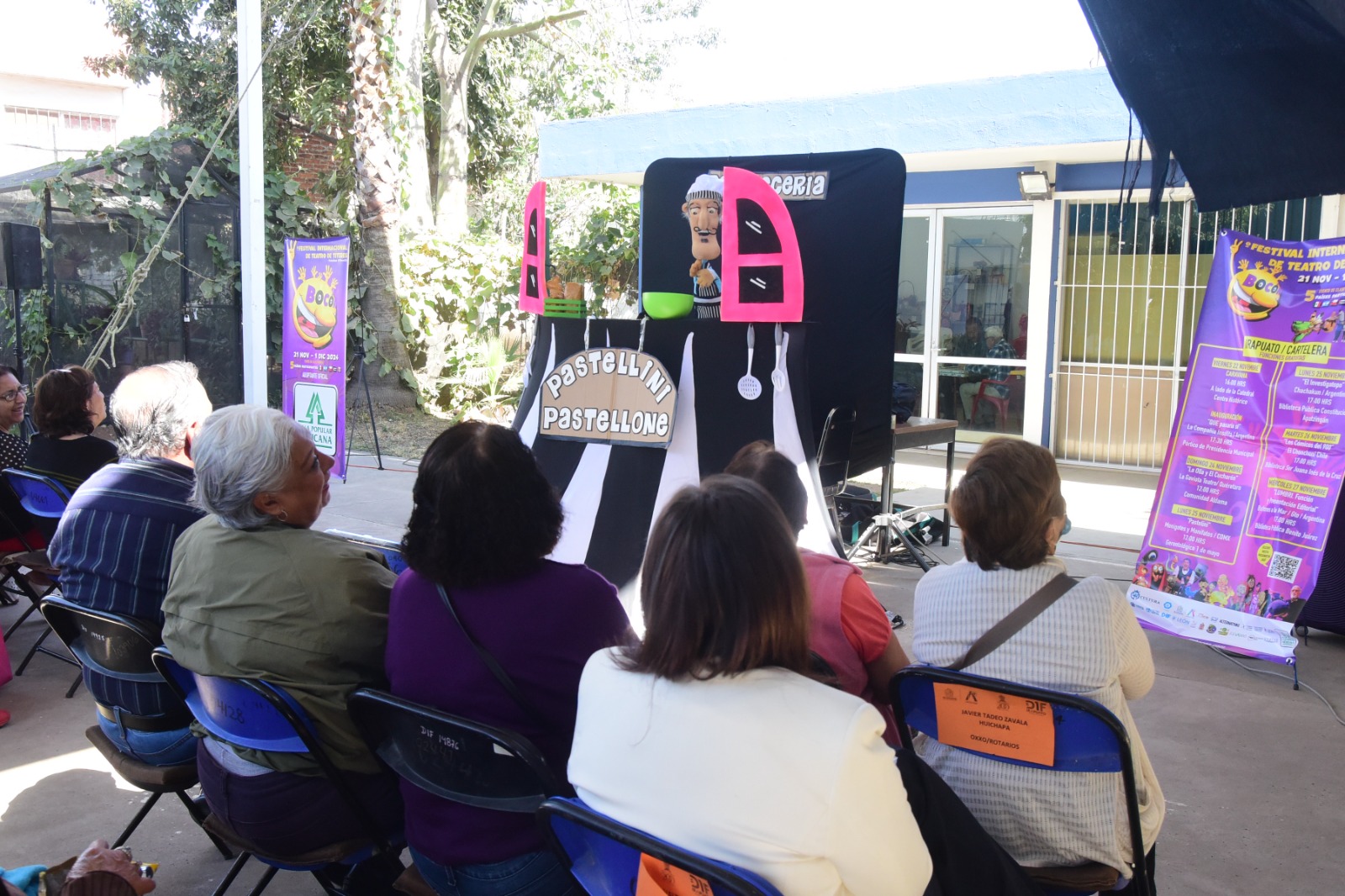 El Festival Internacional de Títeres Bocón llegó al Centro Gerontológico de Irapuato, donde la compañía Monigotes y Monifatos presentó la obra El Pastellini Perdido.