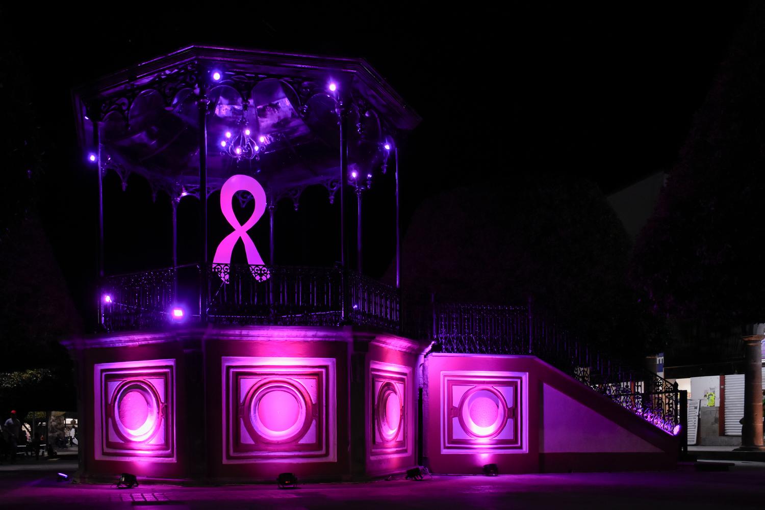 Job Gallardo enciende Quiosco del Centro Histórico de color rosa, por conmemoración de la lucha contra el Cáncer de mama