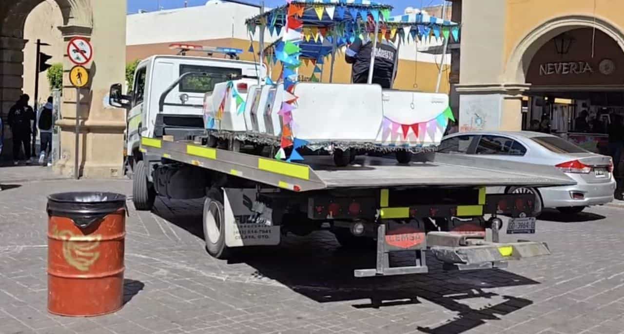 Fiscalización de Celaya retiró el trenecito del Jardín Principal por adeudos y permisos irregulares, hasta que el comerciante cubra multas y regularice su situación.