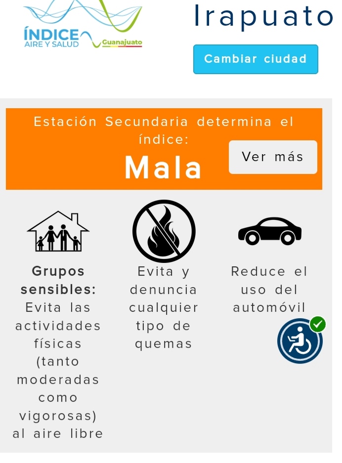 Este martes el aire que respiraron los irapuatenses estuvo contaminado, la Smaot ubicó a la capital fresera en semáforo naranja con mala calidad del aire.