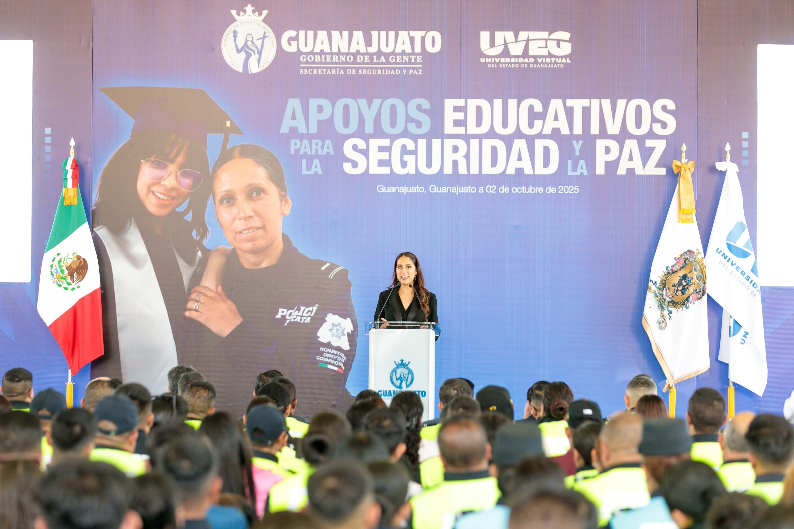 Guanajuato otorgará 1,000 becas a policías y sus hijos, anuncia la gobernadora.
