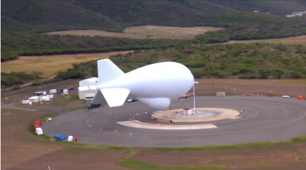 El Aeróstato del Sistema de Vigilancia Persistente del Terreno, de 22 metros de longitud, está lleno de helio y se ancla mediante un cable a una plataforma que pesa casi siete toneladas.