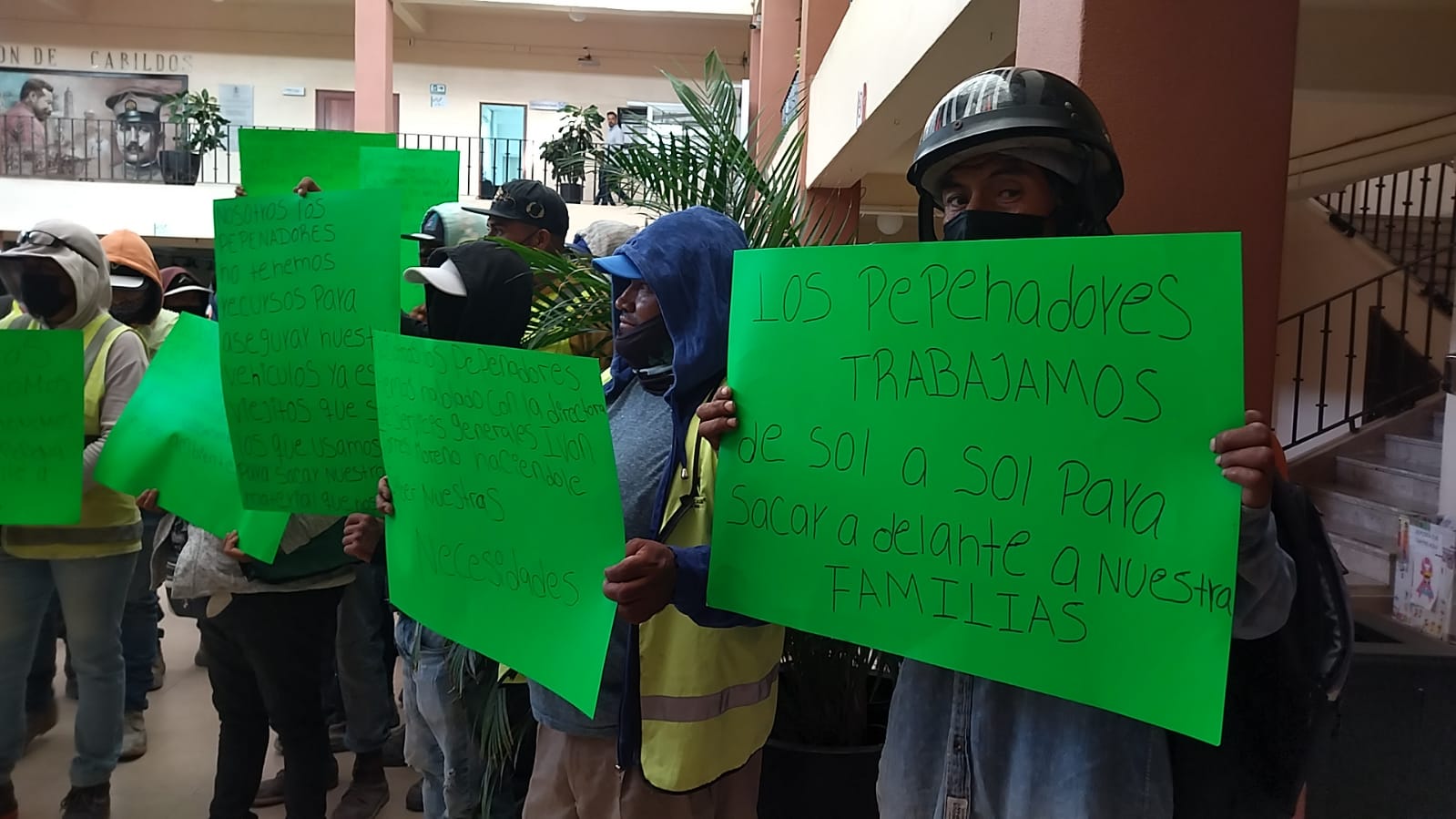 Pepenadores del relleno sanitario Tinajitas se manifestaron en presidencia municipal, señalando que los recolectores municipales acaparan los residuos reciclables dejándolos sin oportunidad de obtener recursos.