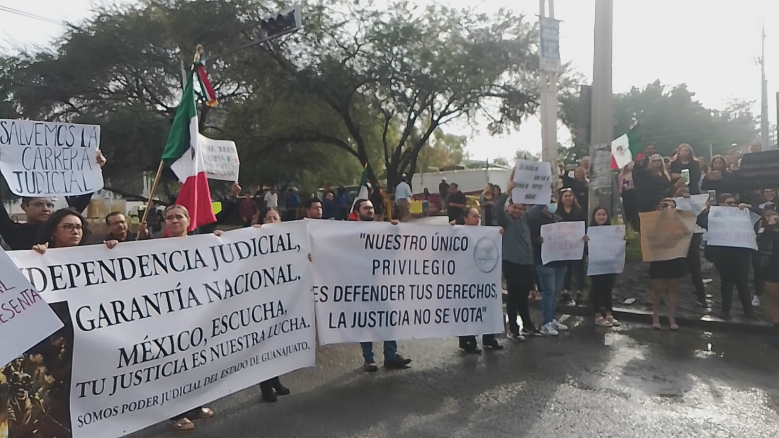 Jueces de Guanajuato se manifestaron en León para mostrar su rechazo a la reforma al Poder Judicial que actualmente se analiza en la Cámara de Diputados.