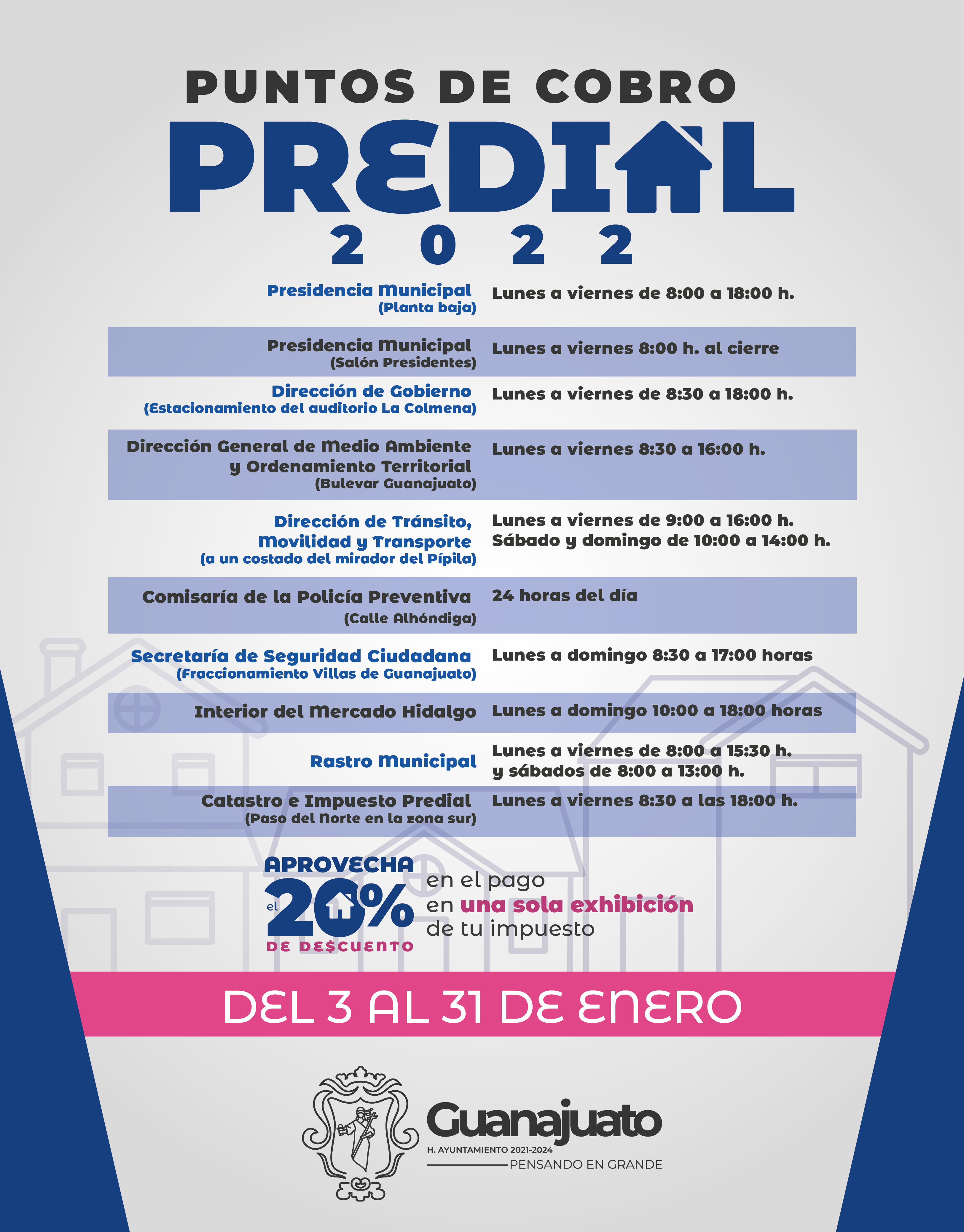El impuesto predial es el principal ingreso que tiene el gobierno municipal de Guanajuato para ofrecer servicios como seguridad, alumbrado, bacheo, obra pública y mantenimiento de los espacios públicos en la Capital del Estado.