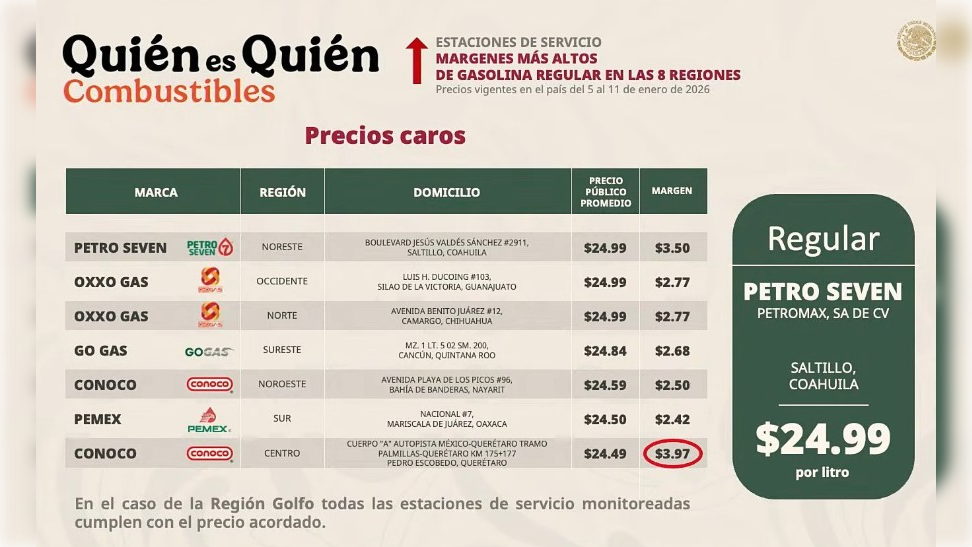 La gasolinera Oxxo Gas en Silao y el Walmart en León son algunos de los establecimientos con precios elevados a nivel nacional.