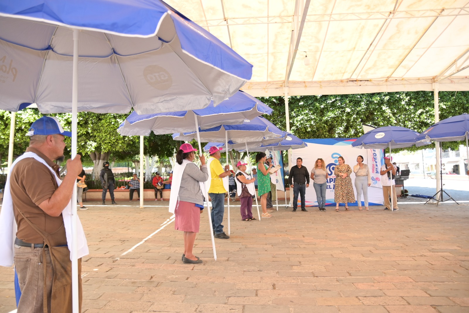 Benefician a comerciantes con entrega de sombrillas