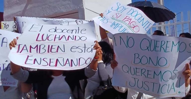 Docentes estatales mantienen protesta en contra de apoyo social de gobierno del estado