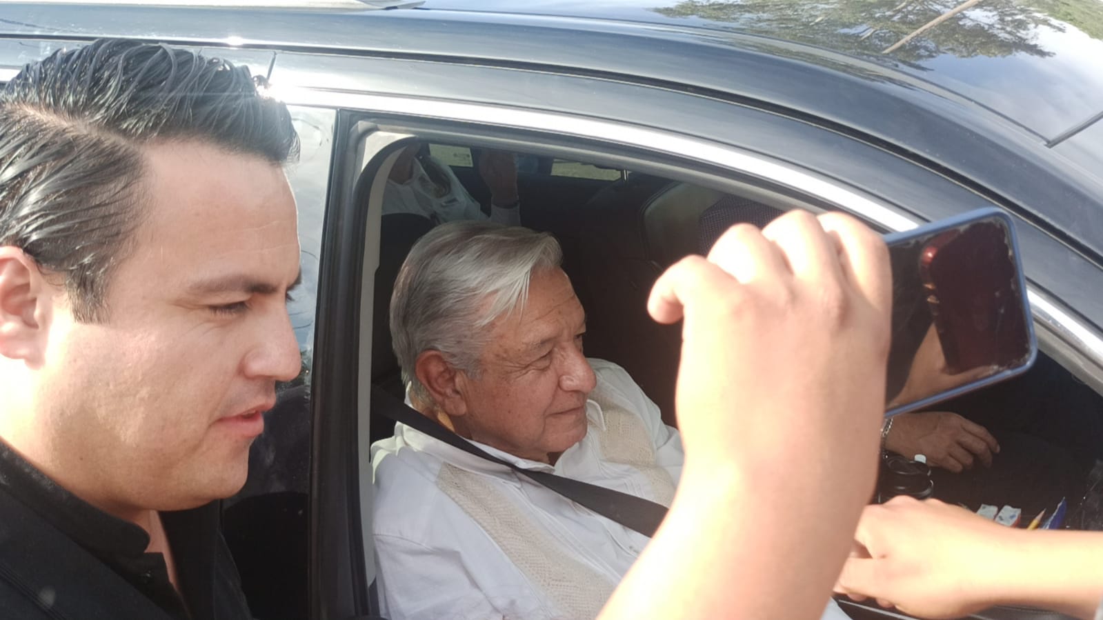 En punto de las 5: 40 salió de Pemex, y tras recibir nuevamente a las personas, aseguró habría inversión para la refinería de PEMEX.