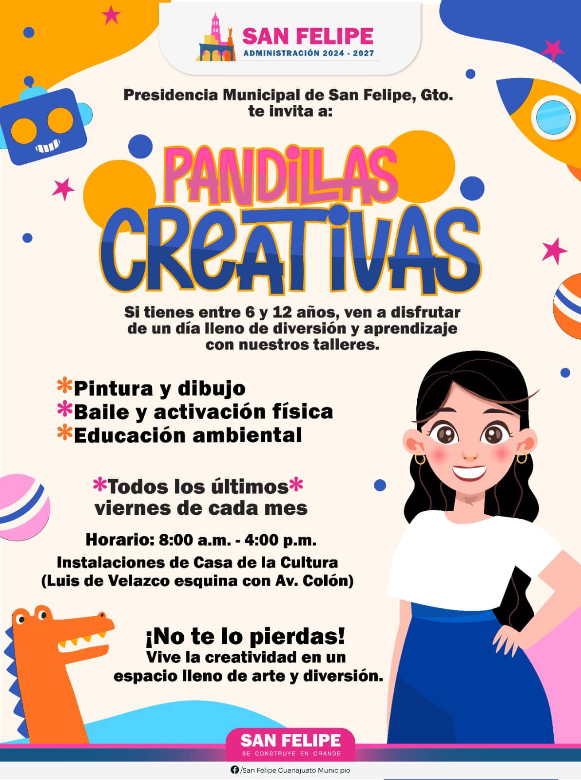 La Casa de Cultura realizará actividades para los menores, denominados «Pandillas Creativas» se realizará para los niños de de seis a 12 años de edad, en un horario de 8 de la mañana a 4 de la tarde.