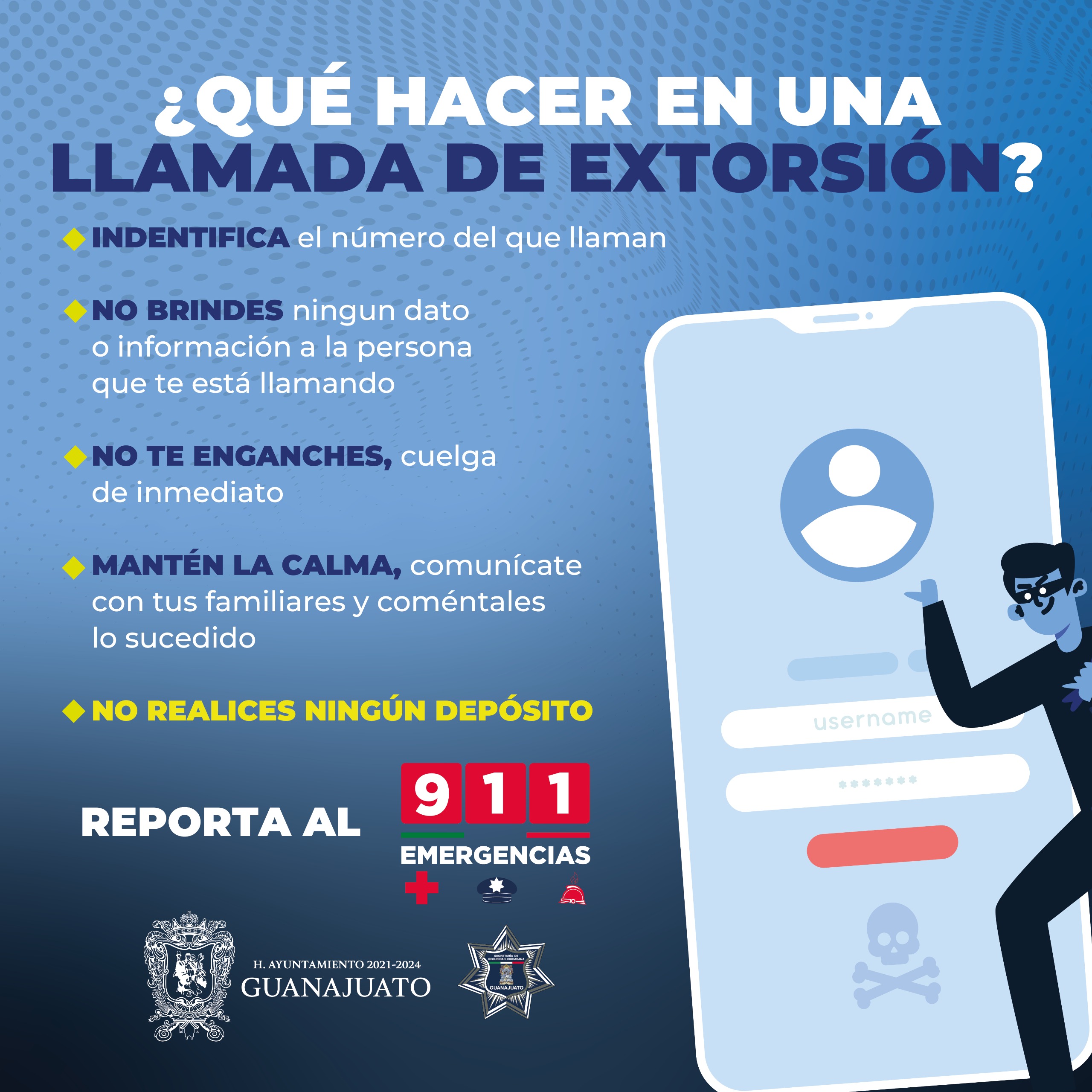 La Secretaría de Seguridad Ciudadana exhortó a la población guanajuatense a mantenerse alerta y a no caer en las trampas de quienes incurren en el llamado secuestro virtual.
