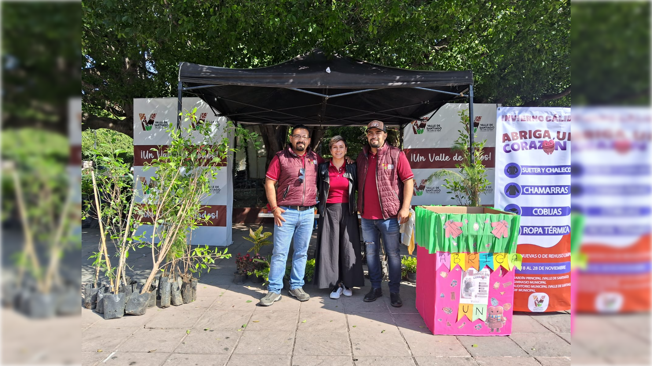 Realizan campaña de donación de ropa de abrigo por un árbol en Valle de Santiago
