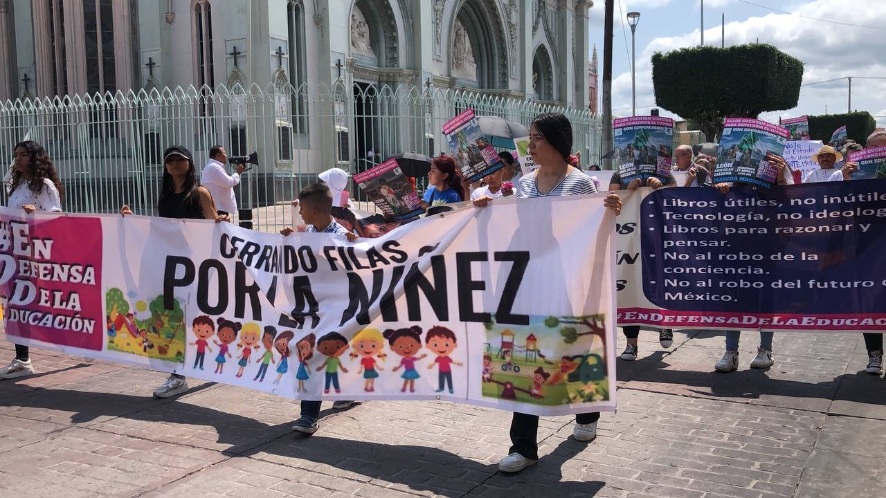 Diferentes colectivos, se dieron cita este domingo para protestar en contra de la entrega de libros de texto de la Secretaria de Educación Pública.