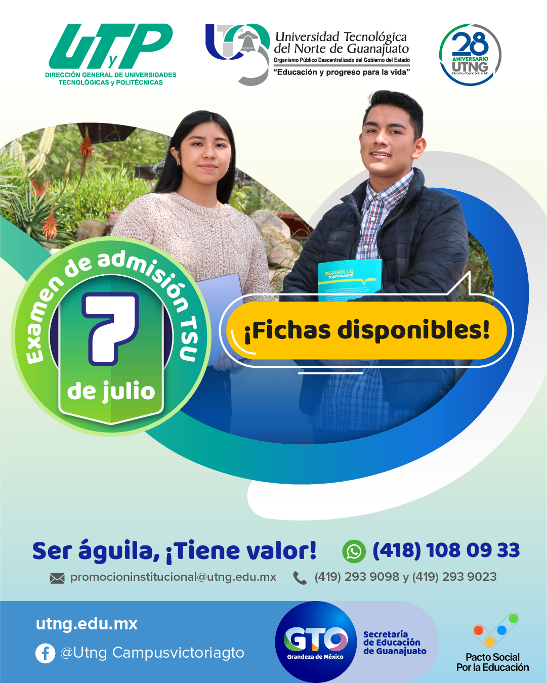 La UTNG, continúa con la venta de fichas de nuevo ingreso, con miras a presentar el examen de admisión para el nivel Técnico Superior Universitario (TSU) el próximo 7 de julio.