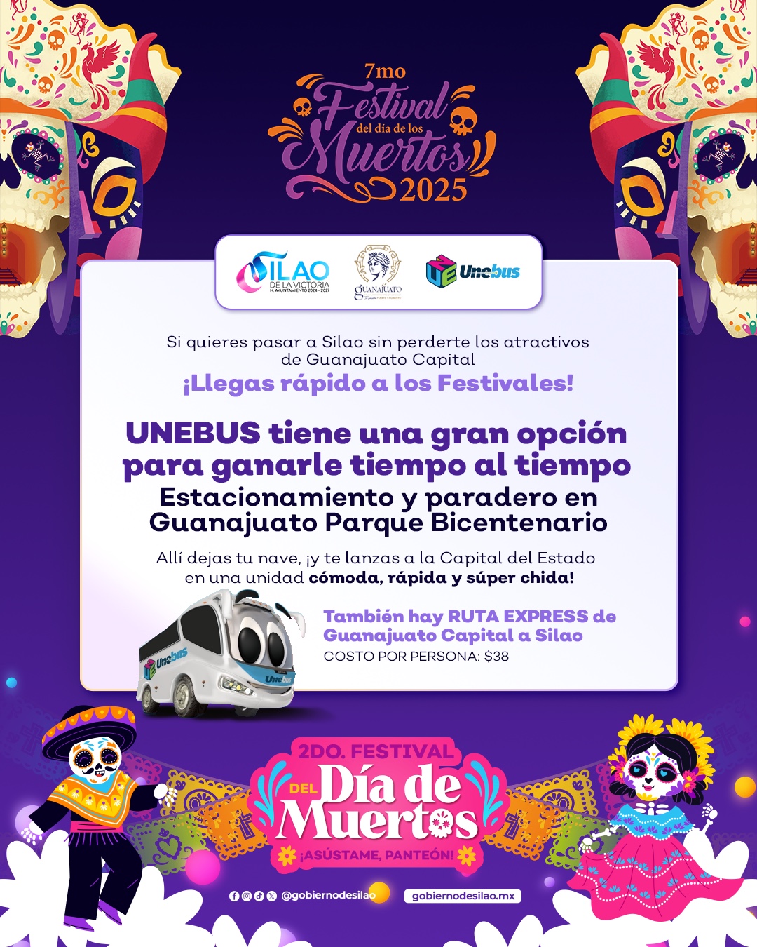 UNEBUS implementa ruta especial para conectar el Parque Bicentenario con Silao y Guanajuato durante el Día de Muertos.