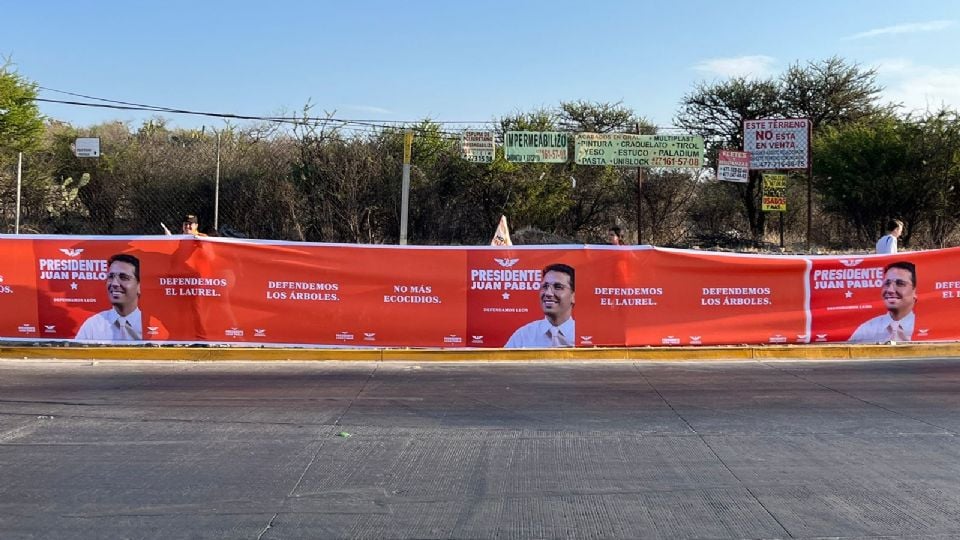 El candidato a la presidencia municipal de León, Juan Pablo Delgado, encabezó una manifestación por la defensa de El Laurel, una de las últimas áreas naturales protegidas de la ciudad.